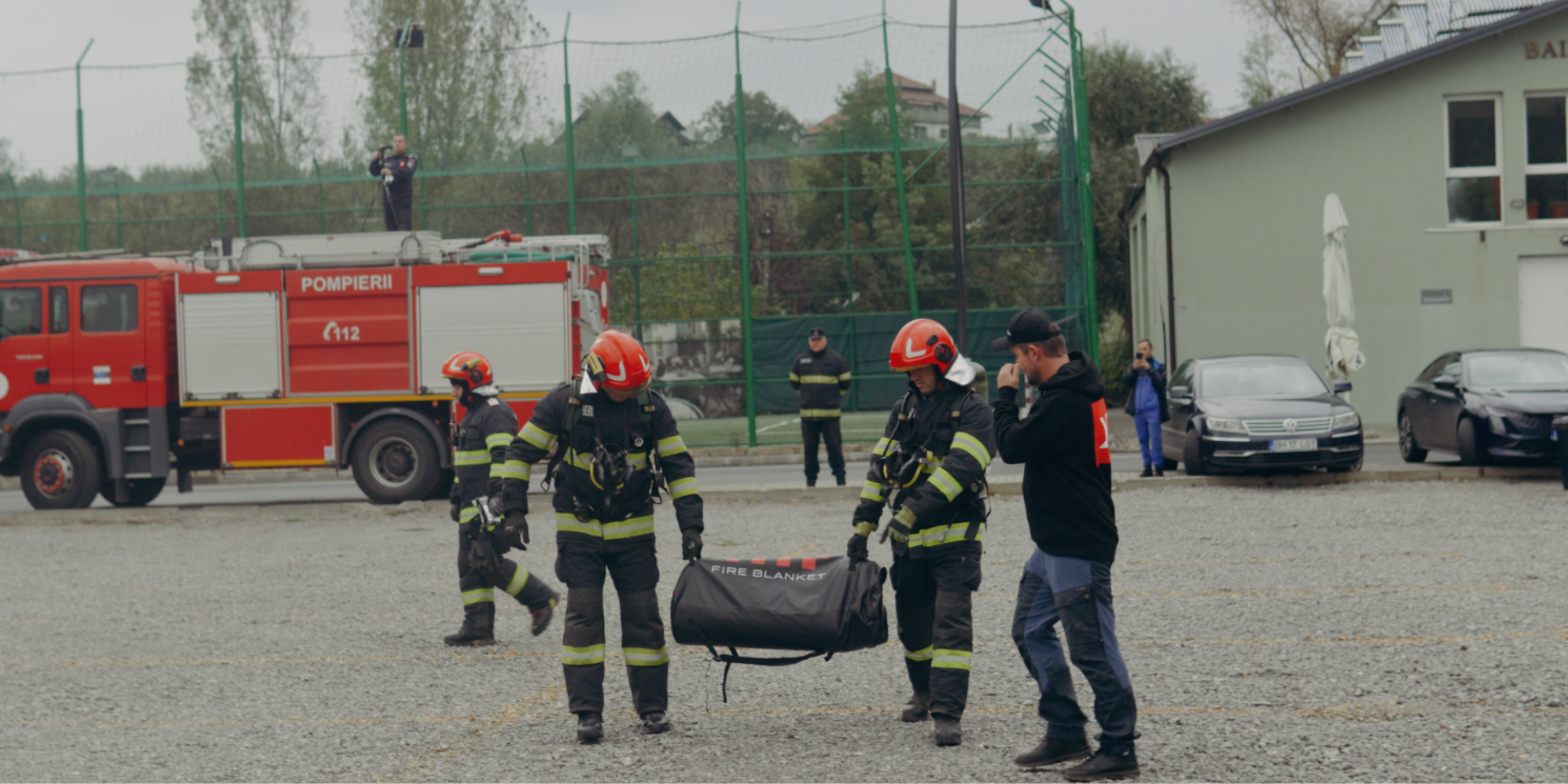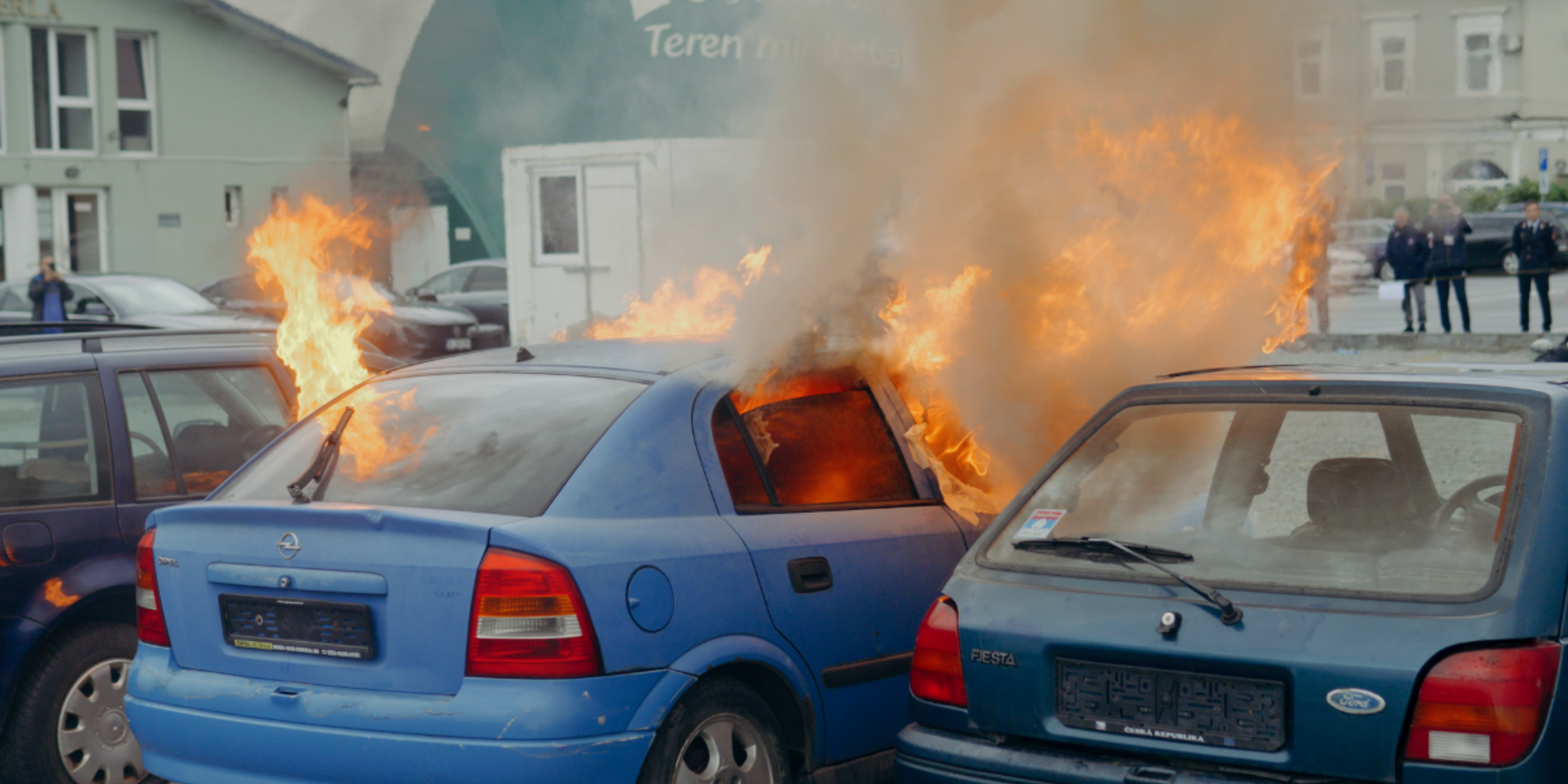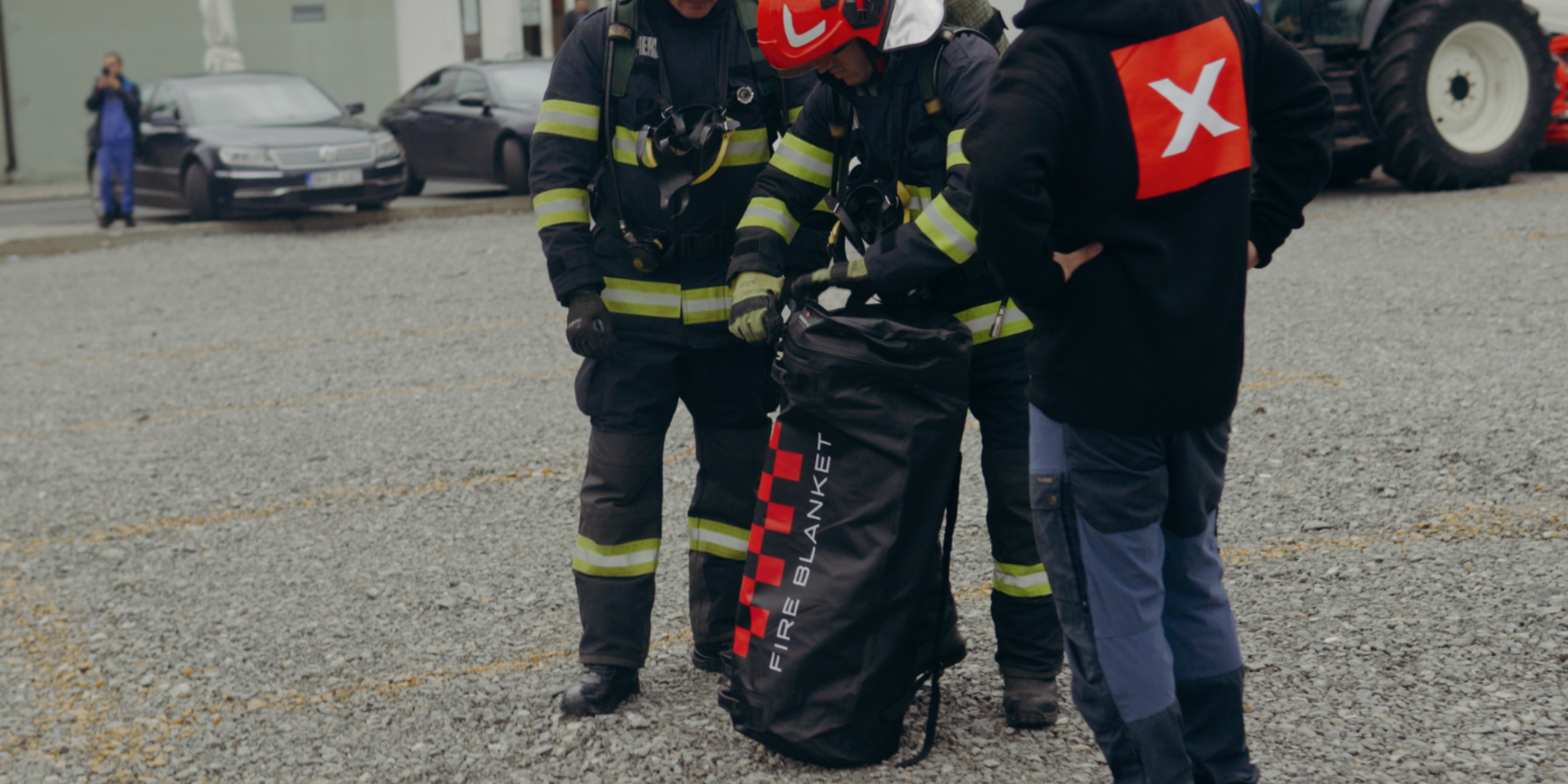 The main topic of the event was the fire of a motor vehicle and its extinguishing using the Bridgehill fire blanket.
